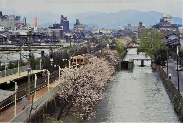 ずっと前に載せた写真かも知れませんが・・・・古いUSBメモリーの画像を整理していましたら、これこんな写真が出て来ました。私の撮った写真ではなく、入手経路が不明なのですが・・・鴨川と(琵琶湖)疎水の間を走る京阪電車。懐かしい光景です。 勿論、車窓からも絶景のだったのてす。右遠方の南座と菊水ビル? が見えますので、多分五条駅だと思います。こんな景色を見ながら通勤していたのがウン十年前、遠い遠い昔の事でした。調べますと地下化は 1988年のことでした。今は疎水も電車も地下!! 片方2車線の川端通り、幹線です。