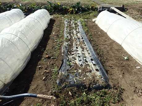 (にんにく球&タマネギ球植え付け地 × 第3弾カリフラワー苗お片付け地)