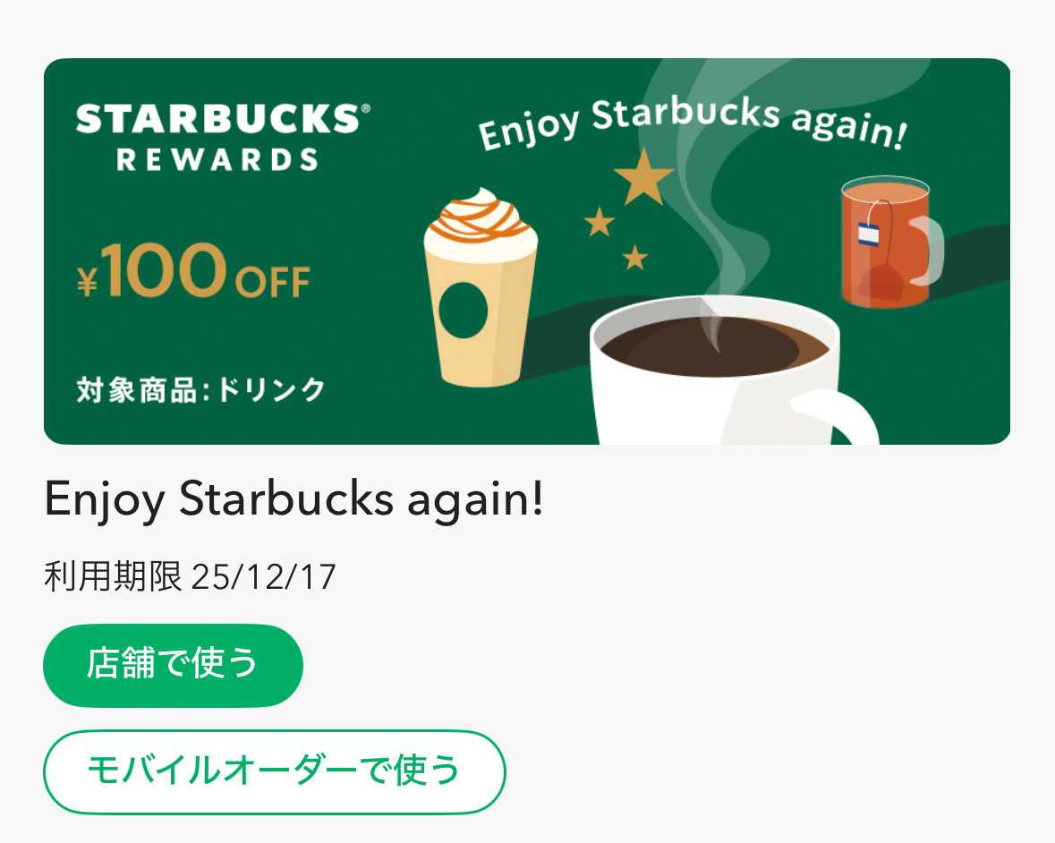 ブラックフライデーの週末☆スタバ100円offクーポン届く