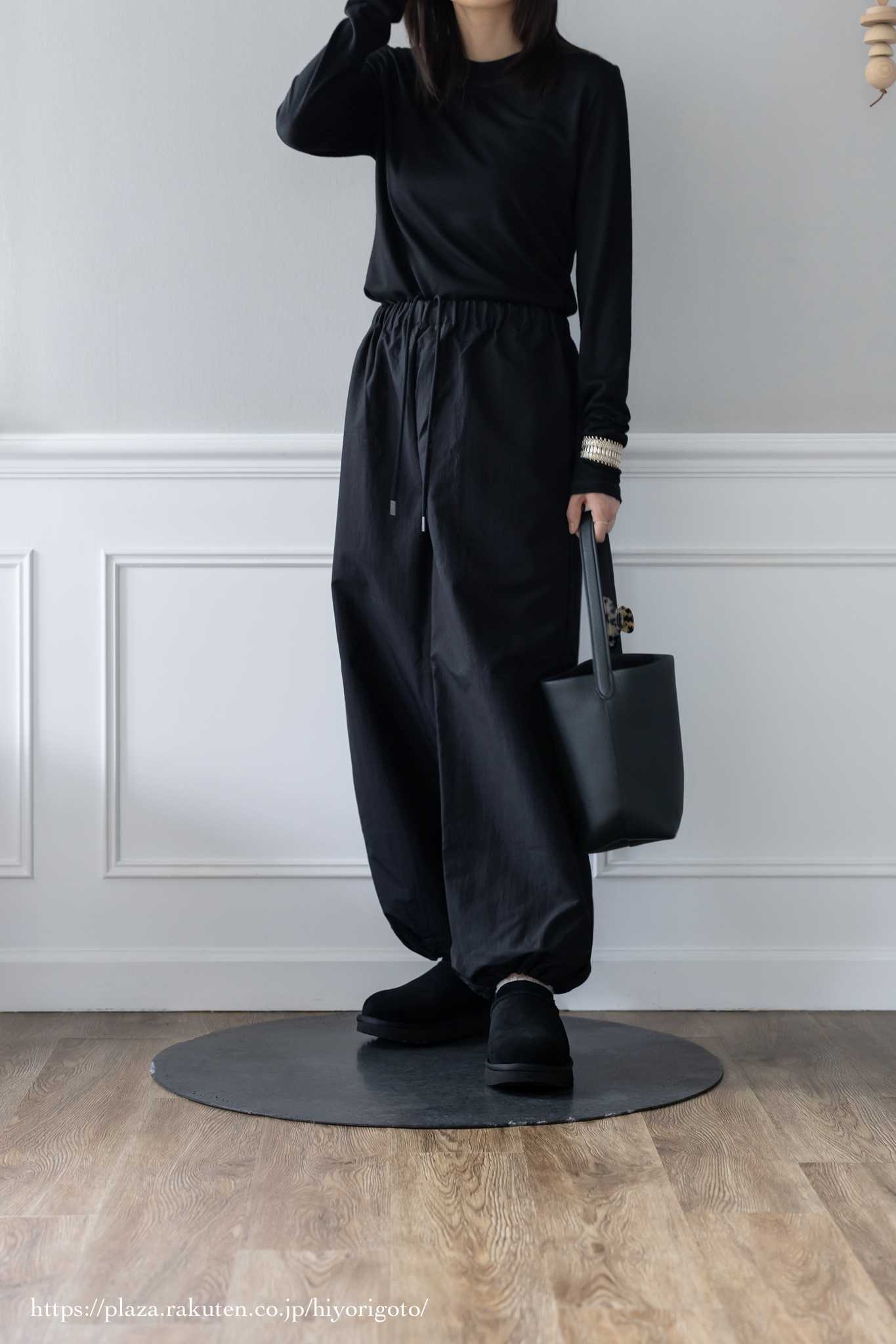 ボトムをシャカシャカパンツに変えてオールブラックに。