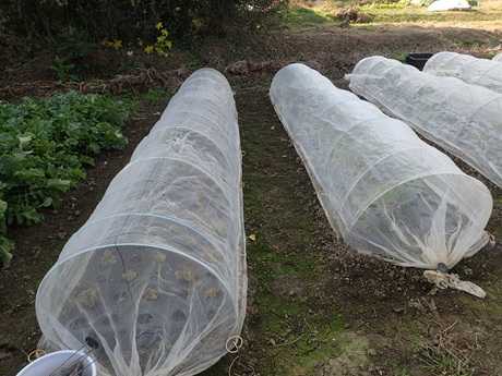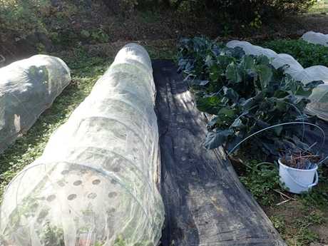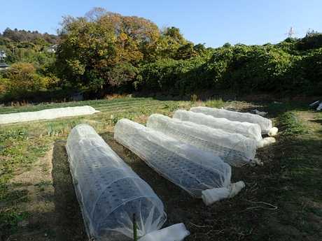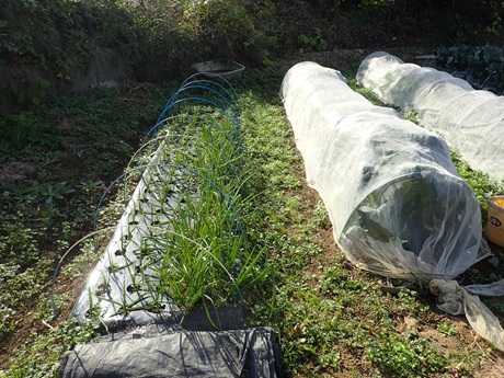 (にんにく球&タマネギ球植え付け地 × 第3弾カリフラワー苗植え付け地)