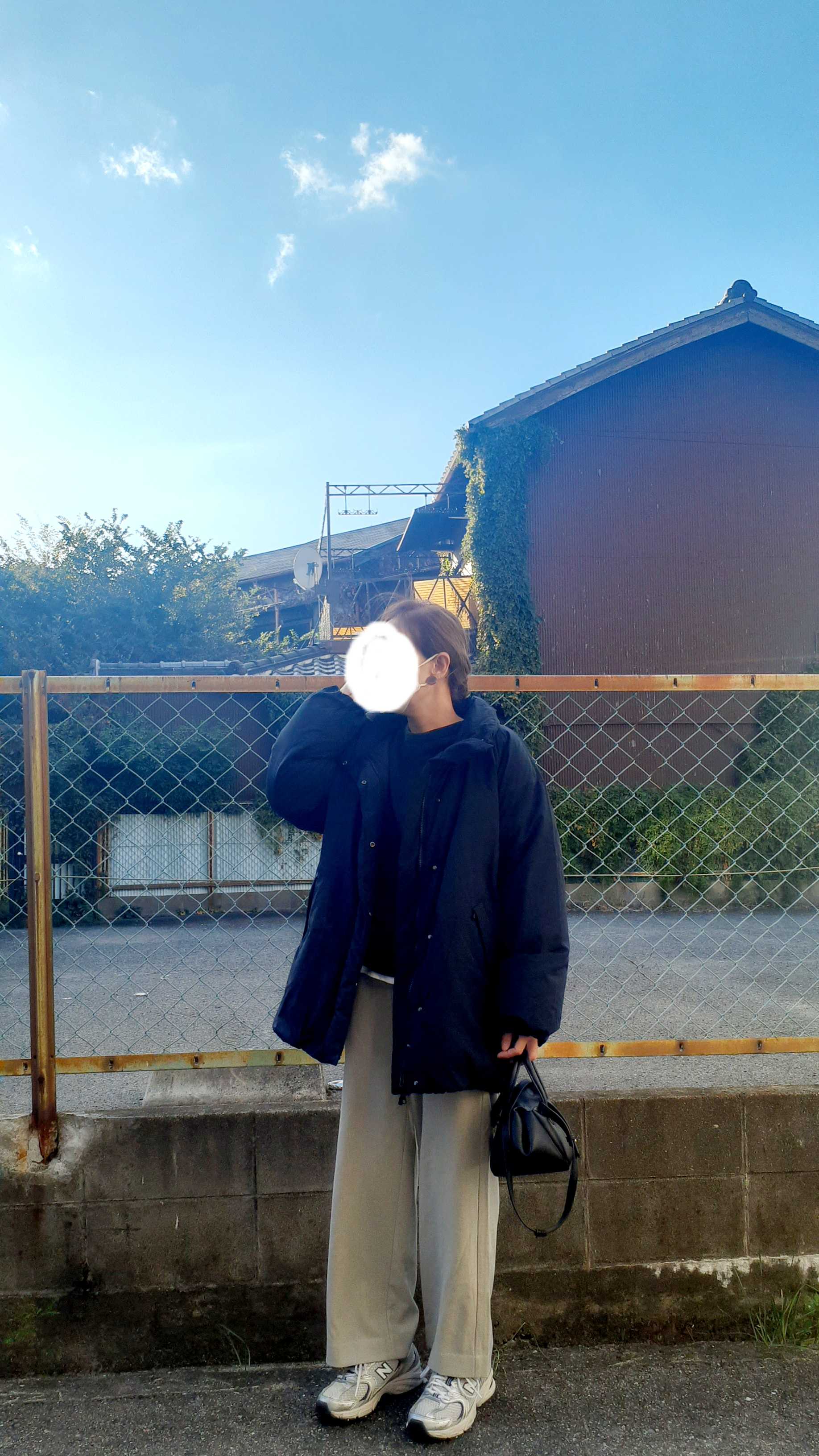 ボリュームがあるダウンなのでタイトスカートと合わせるとスッキリ✨