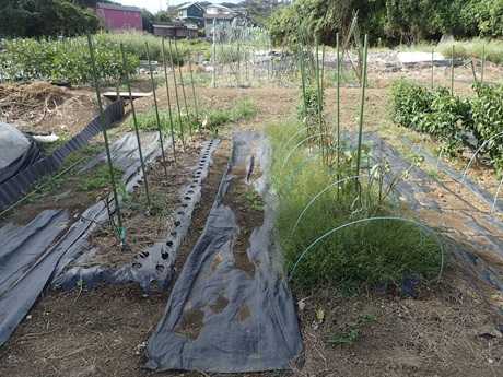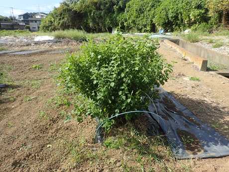 (こぼれ種から発芽した青シソ苗植え付け地)