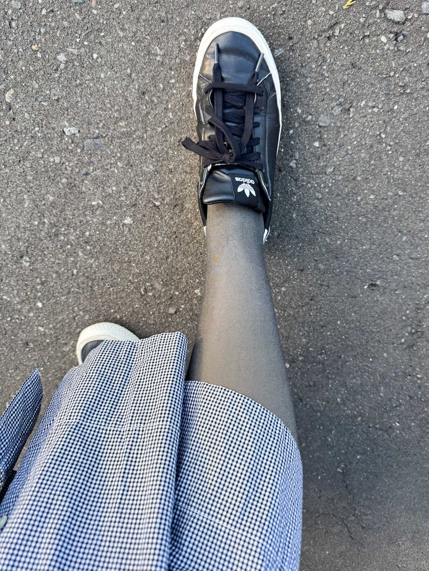 今もアディダスの黒い合皮スニーカーなのですが