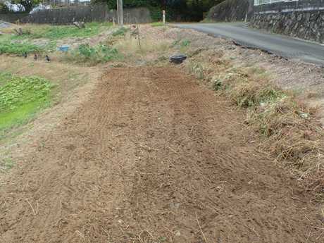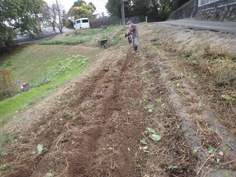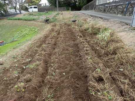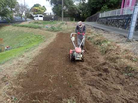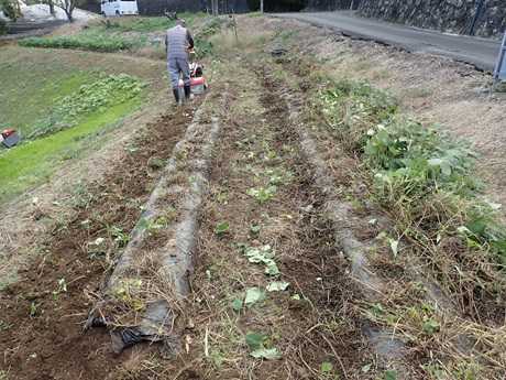 サツマイモの跡地に耕運機をかけてもらいましたよ。