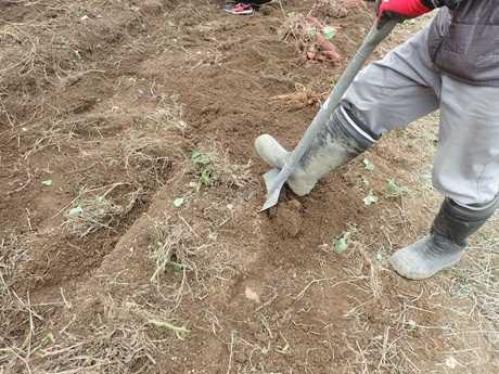 ・晴れ間が続き、土が乾いた日を選んで収穫します。