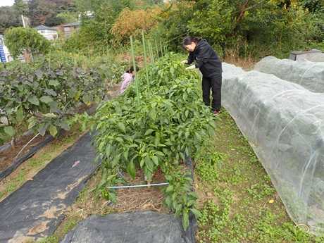 残り少ない秋野菜(ピーマンやナス)などを収穫して楽しんでもらいました。