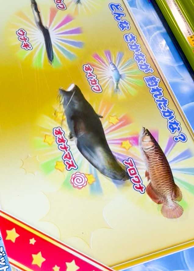 釣りゲームで初めてオオナマズが釣れて大喜び