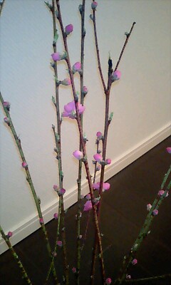 ボケとワイルドストロベリーは、職場に置いて、桃は家で生けていましたが、ポツポツと花が咲き始めました(^O^)
