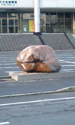 うちの職場前に置かれた拳骨岩。