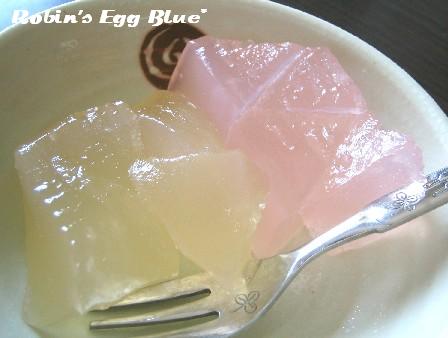 この間、ぉ母ちゃんが喜び勇んで☆わらび餅を買ってきました。。☆どうやら、そこのわらび餅をずっと食べてみたかったのだそうでして。おやつの時間、ぉ母ちゃんとわらび餅を食べながら。。思いついたっ!そして撮った写真が、上のものです。お皿にのせたのは。。カルサイト。(笑)v( ̄∇ ̄*)☆ぉ母ちゃんもビックリです。「ぅわあ、それ美味しそうだねぇ!何?それ。」って。ぉ母ちゃん、カルサイトに、きな粉をかけてみたくてしょうがない様子☆。。もちろん、必死で阻止しました。o(__)o彡_☆ このカルサイトを眺めつつ食べたホンモノのわらび餅はこっちです。↓並べて見てると。。うん、どちらも美味しそうです。(笑)きな粉かけたくなる気持ち、よぅっく解りますが。。ダメです。☆(*^^;今日は、久々に会ったタイコ叩きの友人とビール。。☆最近の話も、懐かしい話も、たくさんして。(*^ー^*)お師匠に会った話や、マリンバ(大きな木琴)のマレット(それを叩くバチ)を毛糸で巻きなおす話、後輩達がやったコンサートの話、とかも。お互いタイコ叩き。でも、考え方とか、違う視点でのお話が出来てとても楽しいひとときでした♪。。と同時に、もっと成長しなきゃなぁ、と。その友人と頷き合ったりもして。(笑)それから、お店ではチョビット☆ビックリなコトが!。。☆★☆そこのお店でバイトしていたのが、友人がこの前までいた楽団のメンバーだったのでした。んんん☆世の中っって~!\(◎o◎)/!なかなか素敵な雰囲気のお店で、また来ようね♪っと話しながら帰ってきました。また会える時が楽しみ♪です。。☆★☆さて☆明日はオーケストラの本番、です。ゆっくり休んで、明日もいい時間を過ごそう♪っと思います。(*v.v).・: