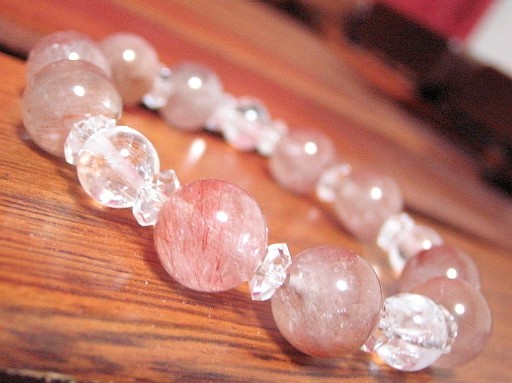 上の写真は、赤ルチル&ヒマラヤ水晶のブレスレットです。