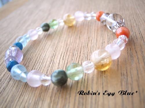 写真は、先日作ったブレスレット。虹色を思い浮かべつつ、