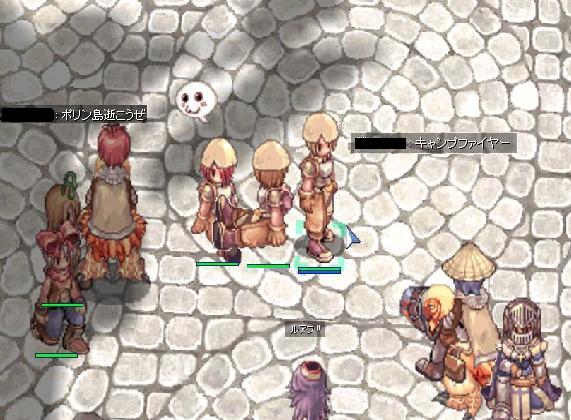 宿題も一通り済まして、夜の11時ごろに少しROやろうかなと思いログインしてみると…… 何か問題が起きてて入れませんでしたーΣ(゚ロ゚;)ドーン でもそれがWorld3だけだったので、暇つぶしに他の鯖に遊びに行くことに('-`) ずっと昔にヴェルダンディサーバーで遊んだことがあったんで、そこのキャラが残ってるかなと思いログインしてみると・・・・… いた!ノービスだけど(・∀・) レベル8のキャラがいたのでLet”sイン! すると・・・・・ イズルードの街に出たんですが、なんとそこには大量(2,3人だけど)のノービスがΣ(゚Д゚;≡;゚д゚) 何やら和やかに話していたので俺も混ぜてくれと話しかけてみました(・∀・) するといい人たちだったようで、PTにも入れてもらえました+。:.゚ヽ( 'ω`)ノ゚.:。+そしてしばらくそこで話していると、全員のレベルをあげるべく、ポリン島へ行くことに(´¬`) テクテク歩いてポリン島に到着ドーm9・∀・)ーン!!「ゴスリンとかいたらどうする~?」「倒そうぜー!」「俺がおとりになって(ry」 そんな話をしながらマップに入ると… いきなりイマシタヨヾ('A';)ノしかし、ゴスリン自体には気づかれなかったらしく、アチャさんがニヤリとエモを出して……こともあろうに巨大ウィスパーに攻撃を(;゚Д゚) 一人が逃げ回りもう一人が攻撃するという戦法で戦うようです(´・ω・`)ノービスの俺たちも一生懸命応援しました(・∀・) そして、5分ぐらいかかりましたがなんと二匹も倒しましたよ+。:.゚ヽ( 'ω`)ノ゚.:。+プチな感動を味わいました(´¬`)