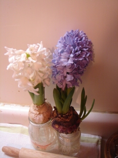 12月から育てていたヒヤシンスが咲きました。(もうずい分前から咲いていたんですけれど・・・)まだ、わたしの住んでいる地域は雪が降ったりしていますが、春が着実にちかづいてきているなぁ、と思い嬉しくなりました。今日は息子が風邪気味ということで、園を休んで一日中一緒に家のなかで過しました。お家好きのぶるべりとしてはうれしい一日でした。(お家好きと言っても賃貸物件に住んでいるんです~。(涙))息子にDVDを見せ(何て悪い母親だ・・・)ぶるべりはアフィリエイトにいそしみました。今日はHPのコンテンツをちょっと増やすことができました。こうやってまとまった時間を取ることが日々難しいので、今日は本当に楽しかったです。----------------------------------------------------------------------つぶつぶ童話(6)春がきたよ春がきたよといったのは白いヒヤシンスまだだよまだだよまださむいといったのは紫色のヒヤシンス春は着実に近づいています