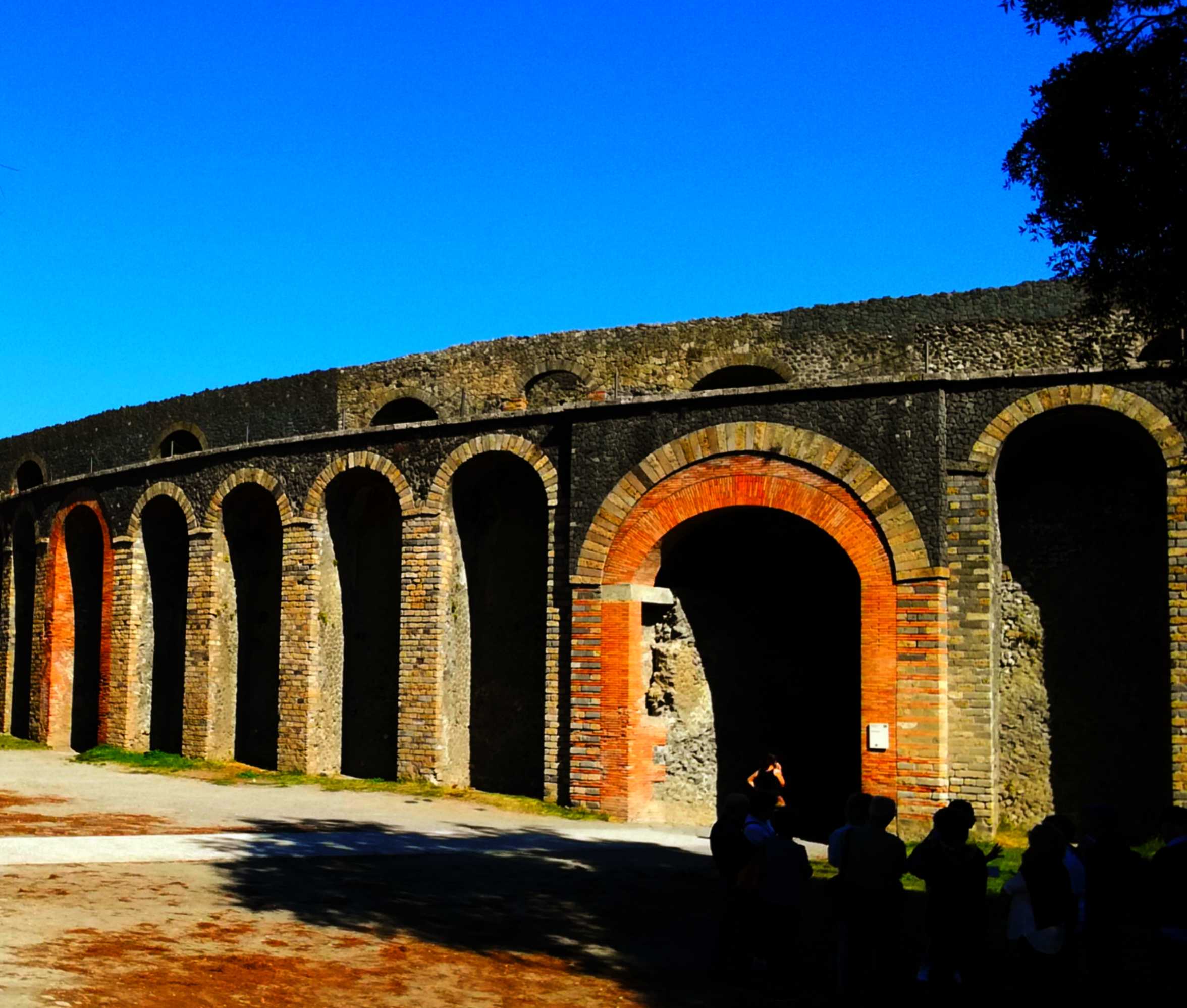 ポンペイ遺跡にあった闘技場競技者用の通路を進むと中はこんな感じでしたローマのコロシアムより100年以上も前、紀元前70年頃建てられた闘技場で、日本の野球スタジアム等と比べると小さいのですが(競技場は約67x35メートル)20000人近く収容でき、剣士対剣士の試合の他にチャリオットという古代ローマ時代の戦闘用馬車に乗って競走する催し等も行われていたそうです。