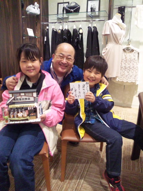この写真をご覧下さいませ。お孫さんとご来店。この男の子(中学2年生)です。「おじさん~、お土産 買ってきたよ~」とわざわざ、千葉県流山市から、おばぁ~ちゃんがいる常総市に来る時は、 必ず、お土産をこの私の買ってきてくれるのです。 彼が、幼稚園の時からのお付き合いです。 「おじさん、うれしいよ。結婚する時は、彼女 連れて来いよ~」「おじさん、何かプレゼントするからね」と答えました。 今日は、千姫祭りでした。 朝から、お寺と商店街を行ったり、来たりと。 その合間に、ご来店で、記念写真を。 嬉しいです。 嬉しいです。 男の子が、こうやって、 興味もない女性の洋服店にご来店。 将来、彼女と結婚する時は、プレゼントをする約束をしました。 ありがとうございます、お客様。