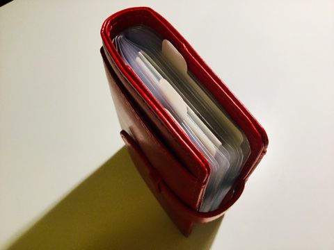 中のケースホルダーがきっとそのうち破れてくるんだろうけど、縦入れで使いやすそうなのでこれにしてみた。カード収納幅も広めに改良されたらしく、出し入れしやすい模様。