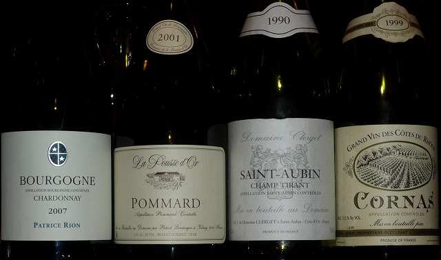 最近ワイン飲み過ぎて書く方が追いつきません。全部は諦めましたが、主だった物は書いて行きますので宜しくお願いします。河豚の会で飲んだワインです。シャンドン・ド・ブリアイユは日本では有名ではないですが、丁寧な作りの蔵です。このワインはコルトンの表記が無いコルトンシャルルマーニュです。おそらく、コルトンシャルルマーニュにある3つの区画の中のシャルルマーニュの葡萄だけで作っているのでこの様な表記をしているのでしょう。味わいは多くのコルトンシャルルマーニュに不足する酸がしっかりしていて非常に美味しいと思います。これは07の特徴でもありますが、他の生産者の07のコルトンシャルルマーニュよりも酸がしっかりしています。そう言う意味では私の好きなワインです。先日ジャドのコルトンシャルルマーニュの07・08・09を飲む機会がありましたが、07は酸が綺麗で一番美味しかったです。09は良いワインですが、酸が不足気味である程度寝かせないと駄目なタイプだと思います。このワインは今飲んでも美味しいし10年後も良いワインになると思います。12本買ったのでワイン会等でじっくり飲んで行こうと思っています。【シャンドン・ド・ブリアイユ】コルトン ブレッサンド[1988]シャンドン・ド・ブリアイユ ペルナン・ヴェルジュレス 1er-CRU イル デ ヴェルジュレス B [1996]年フランス ブルゴーニュ コート・ド・ボーヌ販売店資料よりユベール・ド・モンティーユの早熟版とでもいいましょうか、実に自然でナチュラルな造りのワインを生産する造り手です。最近では白ワインがコシュ・デュリと同評価を得て話題になっていますが、赤ワインもかなりレベルが高く魅力的です。今まではインポーターの関係上なかなか良い状態のワインに出会えなかったのですがここ2年ほどかなり良い状態のワインが日本に入っています。このドメーヌはモエ・シャンドンの一族としても知られ有名貴族ですが、この一族が地道にワインを造っているのです。スタイルは昔から変わらず、若い内は地味なボーヌらしい雰囲気ですが、熟成と共に官能的な姿を現します。若い内に飲んでも良いのですが、寝かせることに価値ある造り手でもあるのです。このドメーヌのフラッグシップはコルトン・ブレサンドですが、若い内に楽しむのならば、サヴィニー・レ・ボーヌやペルナン・ヴェルジュレスの方が美味しいのです。畑の性質で早く開くワインが造られ、これが意外なほどにレベルが高いのです。