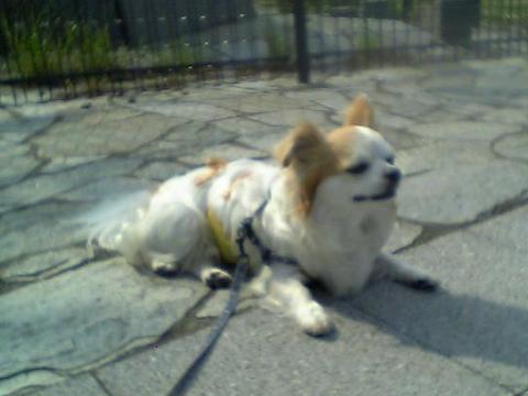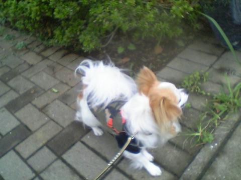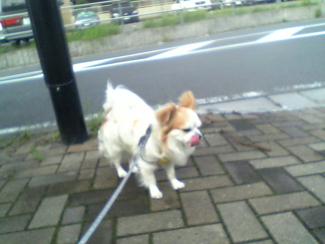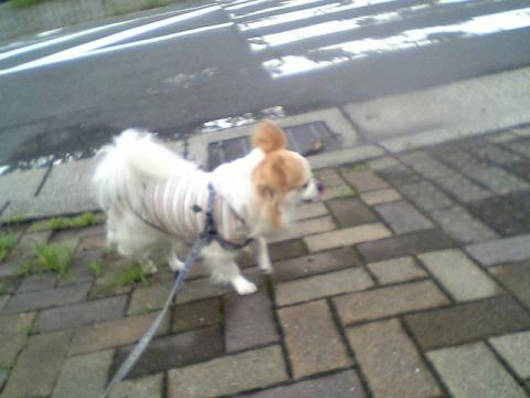 今日は少しお散歩遅くなってしまいました。お天気も愚図ついていて、そのせいか蒸し暑いです。もう帰りたいです。お散歩好きにしては珍しいですね。雨と蒸し暑いのは嫌いです。