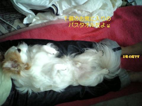 いつものことながら久しぶりの更新ですみません。その間も、ご訪問頂きました皆様ありがとうございます。金曜日にロンのだ~い好きな兄(あん)ちゃん(息子のことをあんちゃんと呼んでます。)が使っていないパソコンを持って来て新しく早くなった回線に接続してくれました。私の使っていたパソコンはだめなようです。(本音は更新も儘ならないし止めてしまおうかと、散々迷いました。)接続して使えるようにしている最中、ロンもウロチョロ、私も興味津々見ていると気が散るからとあたりまえのことながら怒られました。しばらくして終わったからと説明開始、いくら回線が早くなったからって説明まで早くしなくていいよ(ゆっくり説明してよ)と言いたいけどまあ、理解できたからいいとしましょう。ブログとメールだけはできるからと、(えっ、それだけ、でも返事は)はいはい了解。それだけできれば上等です。忙しいらしく出かけるから帰ると言うので、お昼ごはんを食べさせ、(最近私のために休みをつぶしていたので)極少額のお小遣いを渡しました。帰る前にもう一度あんちゃんに抱っこしてもらったけど、帰った後お散歩に行ってもなんとなく寂しげなロンなのでした。