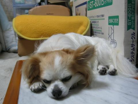 ロンは昨日はじめてお仕事をしました。滑りにくいフローリングと一般的なフローリングとの歩き比べです。約一時間に及ぶ写真撮影でした。はじめは固まっていて動きませんでしたが、さすがプロの方は違います。カチンカチンのロンを終わりのころには走らせていました。私も歩いてみました。ただ滑りにくいだけではないのですが、ほんとに滑りにくいのにはびっくりです。午後2時に出かけて帰ってきたのは夜7時過ぎてました。途中おしっこタイムありで時間がかかってしまいました。帰って来てすぐの写真です。石の上で寝ています。疲れてます。ほっといてください。夜中の1時半ごろの写真です。眠いけど食べ物につられて起きてきました。僕にもください!!朝のおさんぽです。朝日が眩しいっ!!