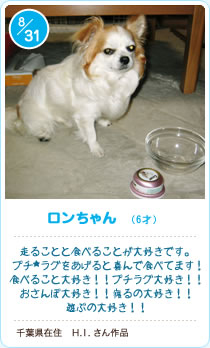 『もっとワン』さんから今日届いたメルマガにロンの写真が載りました。『今週のもっとワン仲間大集合~♪(ここに可愛い肉球マークがひとつついてた)』もっとワンペットスエット 500mL【ウィークリーセール10/8-10/15 23:59】【国産・無添加】ドットわん フリーズドライ野菜ミックス「もっとワン』さんありがとうございます。 *写真を載せてもらえると『もっとワン』さんの オリジナル携帯ストラップが頂けるそうです。