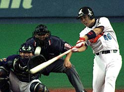 メジャーリーグは9月1日からベンチ入り枠を40人に拡大。しかし、この40人枠に野茂英雄は入れず。1日遅れの誕生日プレゼントはなかった・・・。ラスベガスの侍中村紀洋は31日のタコマ戦に6番サードで出場、6打数1安打(二塁打)という結果。この試合、木田優夫が8回に登板したとのこと。中村と対戦したのかは不明。という事は中村も40人枠に入れなかったということか・・・?(スカイマーク)オリックス2-1西武観衆1万人割れの9635人。こんな日に観に行きたかった(苦笑)。注目の3位争いも甲子園の首位決戦には到底及ばず。水口が3番サード。1号ホームランを放つ!4打数1安打。北川はノーヒット、阿部ちゃんは1安打。大西はブランボーのお疲れさん交代で守備のみ。パウエルは完封目前にして1失点し、交代。8回1/3を6被安打8奪三振2与四球1失点という内容。3時間8分の試合。西武は1日で4位転落、連勝も5でストップ。