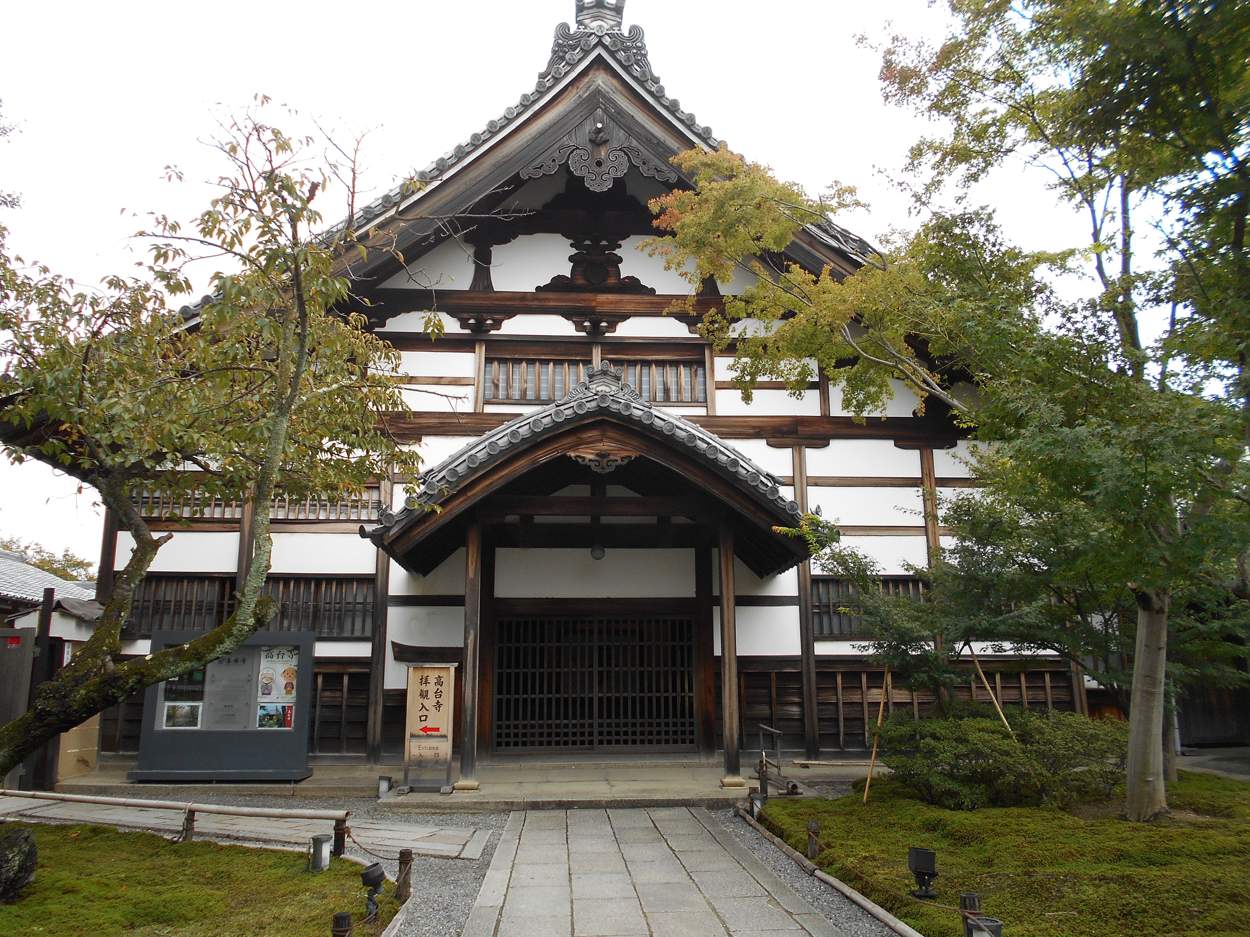 豊臣秀吉とねねのお寺、鷲峰山 高台寺。方丈前庭と勅使門。ちらほらと紅葉が見られる庭園。もう少ししたら更に美しい景色になりそうです。広大な敷地の中には竹林もあります。話題のアンドロイド観音。右は高台寺の御朱印、左は天満宮の御朱印。右は利生堂の御朱印で「あんじん」と読むそうです。左はアンドロイド観音の御朱印。高台寺限定のお守り。3色あったのですが、黒と赤にしました。もう一色は藤色です。高台寺限定品、倒変木の太閤きんつば 千成。ひょうたん型のきんつばに金粉が付いています。きんつばですが、薄皮がないので羊羹に近いです。ユリヤの京のお好みは、あられ、えびせん、豆菓子などいろんな種類のおかきが入っています。おまけでいただいた金太郎飴は、ねねさんの模様。高台寺の中にねねさんのお墓がありますが、残念ながら工事中だったので建物の横から少し見てきました。http://www.kodaiji.com/index.html☆☆☆神社やお寺は階段が多い。高台寺もご多聞にもれず、名前の通り高台にあった。
