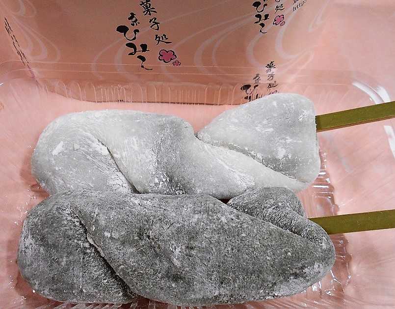 菓子処 京ひみこの嵐山ひねり大福。大福餅をひねって串にさすというアイデアが面白いですね。お日保ちは翌日までなので両方買っちゃいました。白餅は抹茶あん入り、草餅は粒餡入り。柔らかくて美味しいです。嵐山で食べ歩きしやすいように開発されたんでしょうか。コロナ禍が去って早く日常が戻ることを祈ります。抹茶あんの色がわかり難いのでもう1枚撮ってみました。抹茶のこし餡です。https://www.kyohimiko.net/☆☆☆まん延防止等重点措置が出て三宮も少し人が減ったような気がする。いつまでも同じことを繰り返しているだけなんて、2年間選挙に当選することしか考えてこなかったってことなのか。