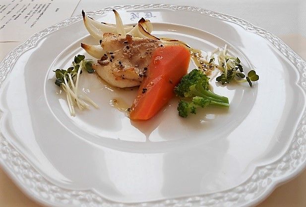 こちらの主菜は鯛のソテーです。柔らかくふっくら仕上がった鯛が美味しいのは言うまでもないのですが、お野菜もホクホクで美味しいです。