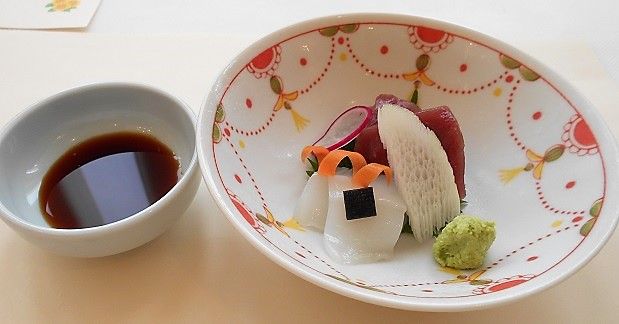 向附は、鮪とイカのお造り二種盛りとあしらい一式。