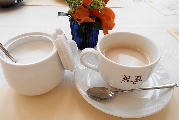 お飲み物は、カフェラテ。落ち着いたまろやかなお味でコースの余韻を楽しみます。