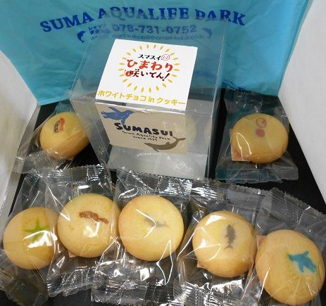 須磨海浜水族園 ホワイトチョコレート in クッキー。須磨海浜水族園の限定品を中心に選びましたが、観光客みたいに3つも買ってしまいました。