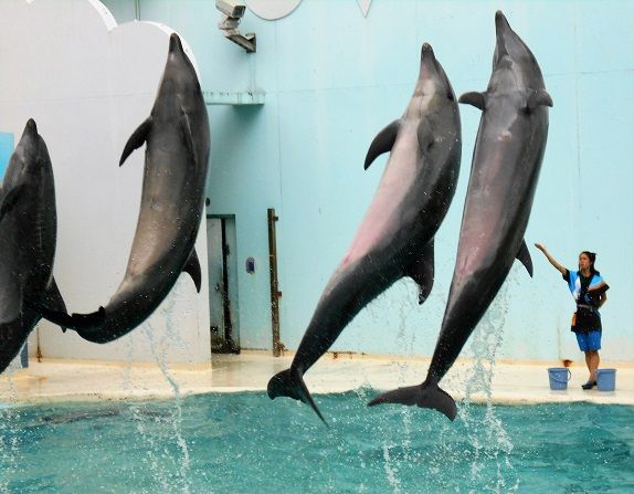 メインはやっぱりイルカライブ。1階席はずぶ濡れになる危険があるので写真やビデオは撮れませんが、迫力満点❣ かなり早くから席を確保しないと希望の席に座れないし、階段に座るか立ち見になります。