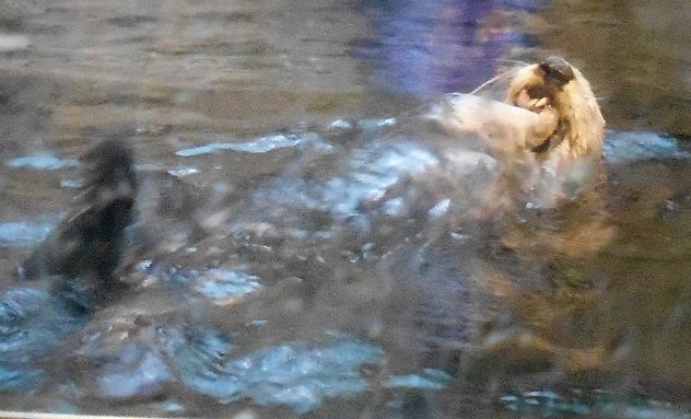 大人気のラッコのお食事ライブ。日本に10頭しかいないラッコのうち2頭が須磨海浜水族園にいるそうです。