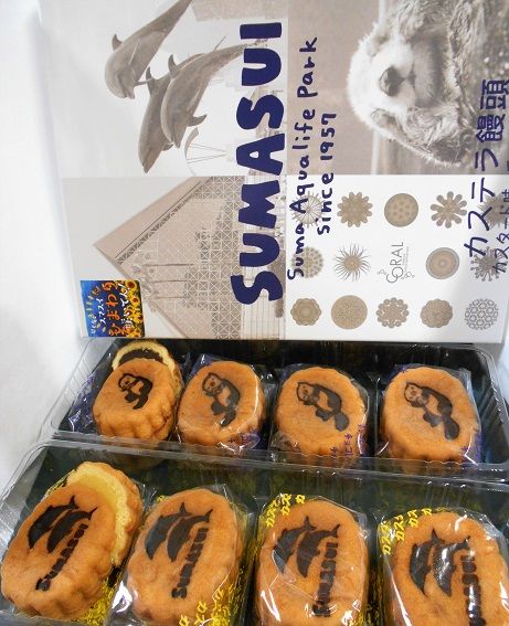 須磨海浜水族園 カステラ饅頭。ラッコはチョコレート、イルカはカスタードです。