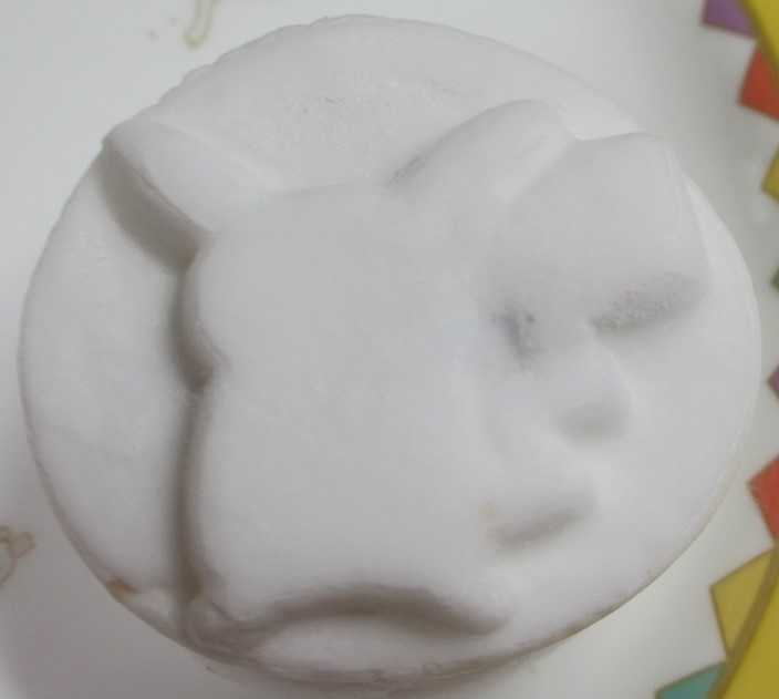 ふわふわケーキって、ポケモンのシルエットが付いたマシュマロなんですね。ポッチャマの袋から出てきたのはピカチュウで、残りの2つはイーブイとカビゴン。ランダムに入っているようですね。