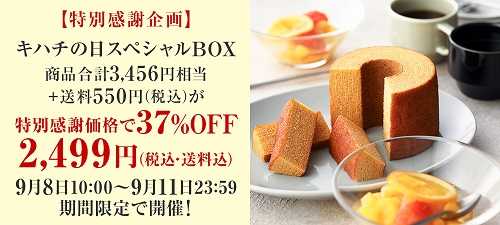 おはようございます。10時~キハチオンラインショップさんで恒例のキハチの日スペシャルBOXが販売されます今回は37%OFF!!おやつバームクーヘンとフルーツポンチの詰合せ※なくなり次第販売終了となり次回販売は未定です。予めご了承ください。おやつバームクーヘン×1個フルーツポンチ イエロー:400g×1個ドリップコーヒー キハチブレンド[深煎り] 1P×2個計3種4個入 フルーツポンチ美味しそう~8日のキハチの日に販売されていたスペシャルBOXですが次回販売は未定らしいのでしばらく販売お休みかな。。。