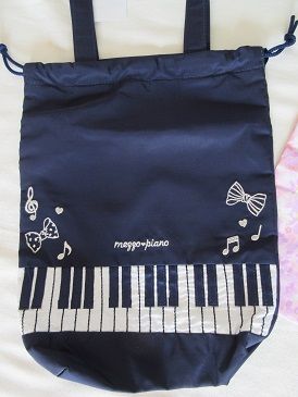 メゾピアノ(mezzo piano)ピアノモチーフ持ち手つき巾着(黒)