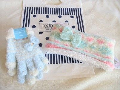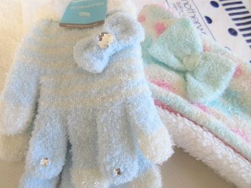 ガールズリボン付細ボーダー手袋 ブルー【M 5-9才 L 10-13才】(子供服...