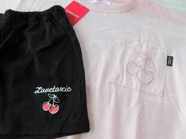 ラブトキシック(Lovetoxic)チェリー刺しゅうTシャツ×ショートパンツセット