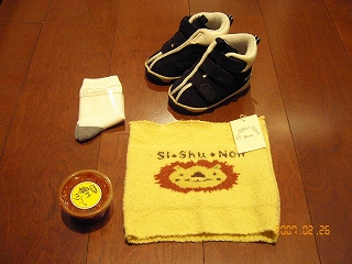 いつも美味しいもの情報や子供用品のお得情報を届けてくださるにくやさいさんからうーたんにプレゼントいただいちゃいました♪これ、いいですね~履かせやすい!!そして、うーたんも気に入ったみたいで自分で靴を持ってくるんです(笑)長靴で誤魔化すつもりだったけどやっぱりちゃんとした靴の方がいいのね~って当たり前か。。。他にもコムサの靴下やシシュノンの腹巻(o^-^o)腹巻フェチのわたしとしてはこれほど嬉しいプレゼントはないのだ~!!!噂の柚子胡椒までいただいちゃいました♪楽しみ~鍋にするど~~~~~~にくさん本当にありがとう♪☆。・。・★。・。☆・。・★・。追記タイトルの店内徘徊の意味を書くのを忘れてました。。。この靴履かせて買い物に行ったら店内を徘徊し続けたんです。。。うーたん。。。もう帰ろうよ~ってママが泣き出しそうでした( p_q)エ-ン