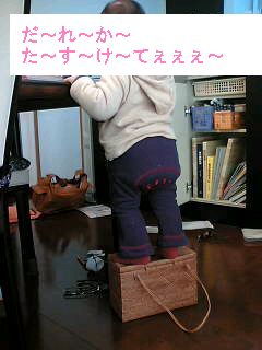 こちらのカテに初投稿♪やっと日記書けたよ。。。って言うかやっと家に入ることができたよ。。。さぶかったよぅ・・・うーたん。。。。夕方になったらおうちに帰ろうよ~~~~~~( p_q)エ-ン棚の扉も開けるようになり今日はママの大切なかごバッグを踏み台代わりにテーブルの上を物色(泣)それ見た目はアレだけどお父さんにこうてもろうた(買ってもらった)珍しいバッグらのんに~