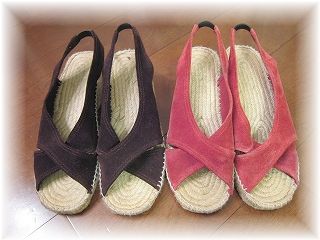 ひと夏で履きつぶしそうな勢いのこの子たち。。。ほぼ毎日履いていました~だって、ものすごく足に馴染んで歩きやすいの~ゴムがはげてきてかわいそうなので地元の靴職人のおじさんに相談~かなり磨り減っていたゴム底を見せて「裏を全面張替えて欲しい~」と伝えたつもりだったのですが。。。。・・・・・ヽ(  ̄д ̄;)ノ エー!?おじさん~~~~~~なんなのよ~~~~~~このかかとは~~~~~~5ミリほど高くなっちゃって無茶苦茶歩きにくい!!しかも。。。。これじゃあエスパドリーユのシルエットが台無し。。。。きちんと説明しなかったわたしが悪いしおじさんは「これで絶対に磨り減らないよ~いつもありがと♪安くしとくよ」笑顔に負けて何も言えずに帰ってきました。。。。他の職人さん探そう~~~~~~ε=ε=ε= 。・゜(゜ノT-T)ノ気を取り直して来年はこの形を買いたい!↓↓↓コレはなぜこんなに安くなったの?リボンが微妙だから??このリボンを合皮の紐とかに付け替えたら可愛いと思うのだが・・・冒険しすぎかな~(笑)↓↓↓