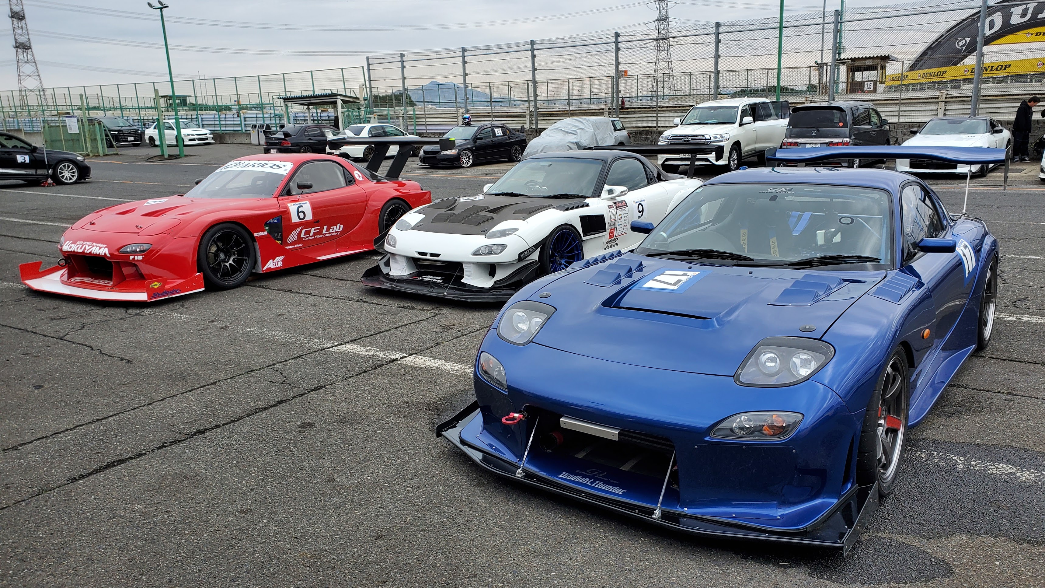 以前の仕様は、T78でシーケンシャルトランスミッションを使用していました。ベストタイムは、2012年3月 57秒824(A050GS)今回はブーストアップでHパターンに仕様変更し、エアコンも装着し自走できるようにしました。ロールバーも追加したので車重は重くなったと思います。ベストタイムは、2025年3月4日 58秒426(12D Used) 59秒442(A052 Used)エアロパーツは基本的にGarage KAGOTANI製で、オーバーフェンダーは雨宮、3連・5連ダクトはRGNです。今回の仕様変更に伴いタイムアップに最も効果があったのは、籠谷製のフロントアンダーウィングです。以前はフラットタイプのフロントパネルを使用していました。https://kagotani.jp/prod_other.html効果が凄く効きすぎてしまい、単体装着ではバランスが全然変わるようです。籠谷さんの経験に基づき、青のFDでは敢えて効きがマイルドになるよう装着されています。たまたまトップグループのFDとピットが隣りだった際に撮影しました。フロントアンダーパネルの突き出し量が全く違います。青FDは効きが制限されるように装着しています。この状態でも筑波を走り最初に籠谷さんに伝えたのは、「中古のA052がA050GS新品のようにグリップします」。フロントタイヤのグリップが全然違います。ハイパワーFRではパワーオーバーをどうやってグリップさせるか、というのが永遠のテーマだと思っていました。フロントアンダーウィングを使用すると、80Rと最終立ち上がりで、フロントが曲がりすぎてオーバーが出るという初めての経験をしました。次に非常に効果的だったのは、ブレーキ性能がかなり向上します。ノーマルキャリパーですので絶対的な制動力には限界がありますが、コントロール性が著しく向上します。走行機会の少ないアマチュアドライバーにとって、ブレーキのコントロール性は本当に大事です。たまにしか乗れないのにロックしやすいと、狙った周にタイムを出す難易度が高くなってしまいます。そもそもロックする恐怖が勝り高速コーナーで飛び込めなくなります。リアのGT-wingは籠谷製ですが幅が1600mmです。たぶん20年以上使用しています。私、ホント義理堅いんですよね。Narita DogfightのYou TubeでGT-wingディスられてましたが、確かにやむを得ないですね。1600mm・・・。今時、いないな。フロント空力の進化を体感して思います。そりゃみんなリア羽が大きくなると。しかし籠谷製のリアウィングはこれしかありません。とりあえず、スーパーハイマウントのステーを急遽作成して頂けました。改善はしたのですが、まだフロントが勝っていて、その後ウィングを最大まで立てました。この状態である程度前後バランスが落ち着き、80Rは全開で立ち上がれるようになりましたが、最終立ち上がりは、まだフロントが勝っています。今シーズンはここまででした。フロントアンダーウィングは本来の性能が発揮されていません。来シーズンは更に効果が発揮されるように取り付けを見直します。問題のリアウィングですが、籠谷さんは新規で作成する方針がないようです。20年以上使用したので筋は通したのではないでしょうか。現存のwingは新規で売れるような製品でもないようですので、相談の上、他社製品に変更することになりました。フロントアンダーウィングを前方向にオフセットし、1800mm以上のGT-Wingを装着すれば、それだけで1秒以上速くなりそうな気がします。大幅な仕様変更をしたからと言って、計算通り単純にタイムアップする甘い世界ではないのは重々承知しています。ただ、秋から準備を始められれば、来シーズン中に、経験したことのない景色が見れればいいなと思います。