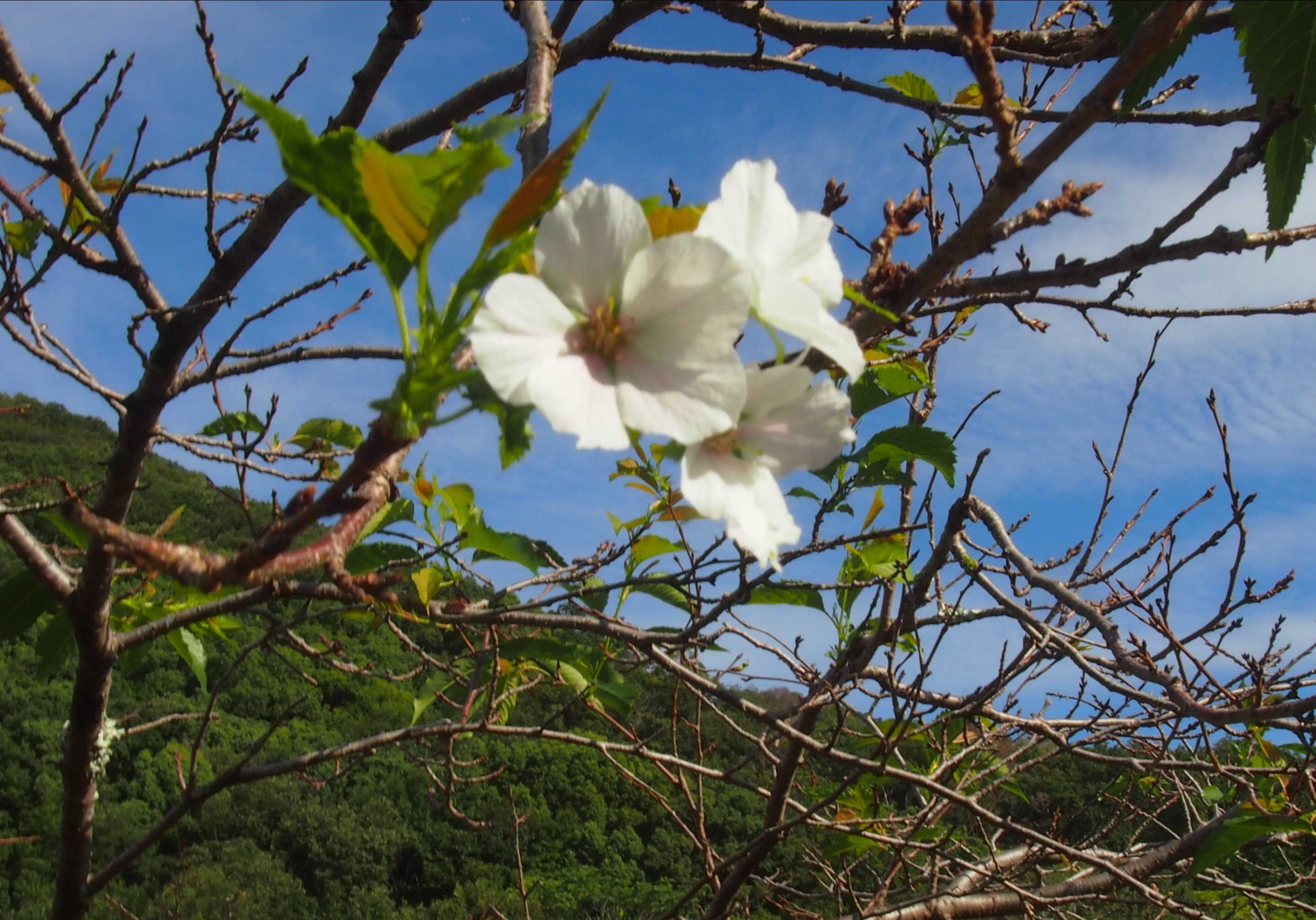 山の蝉もツクツクボーシだけになった。風も落ちついてドライヤーの前にいるような温かさはなくなった。桜の花が咲いている。狂い咲きだが、毎年この木のような気もする。ヤマボウシの葉も色づきはじめた。もう少し気温が下がれば散るだろう。柿もつつかれる。この時期に咲くタンポポ。秋は山からやって来る。