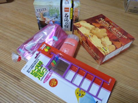 入浴剤、ヘアクリーム、クレンジングを買って…。あぁ、まだ金額が!!!ええい、これも買っちゃおう♪ハクちゃんのハシゴのおかげでおやつゲット。