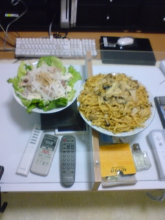 息子が1月4日に家を出て一人暮らしを始めて一ヶ月。郵便物が少し溜まってきたのでメールしてみた。「まとめてそっちへ送ろうか?」と。ついでに、「元気してる?」と。やっぱり親としては気になるので。「ありあまるくらい元気だよ。今夜はきのこスパゲッティと豆腐サラダ、今作ってます」って。「凄い!できたら画像送って~」それから約1時間くらいしてから送ってきた。「できあがり~」と。ガラステーブルなので、下に置いてあるリモコンまで写っちゃってるよ。男の子にしては上出来だな