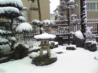 今シーズン初の積雪は先週の日曜、ほんの少し数ミリくらいだった。9日(土曜)朝から降り始めた雪はどんどん積もり始めあっという間に7~8センチくらいの積雪。家の前はバス停だし、歩道だからやっぱり雪かきしなくちゃ。結構大変庭はこんな感じに。